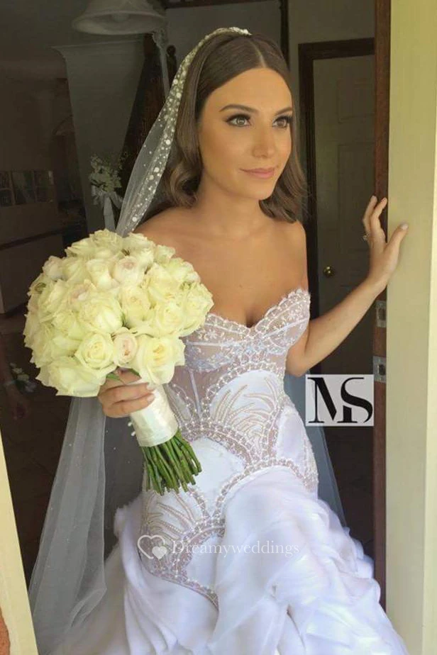 Delicate Sweetheart Sleeveless Wedding Dress With Beadings Ruffles
