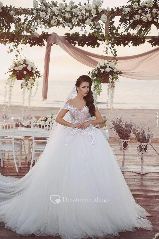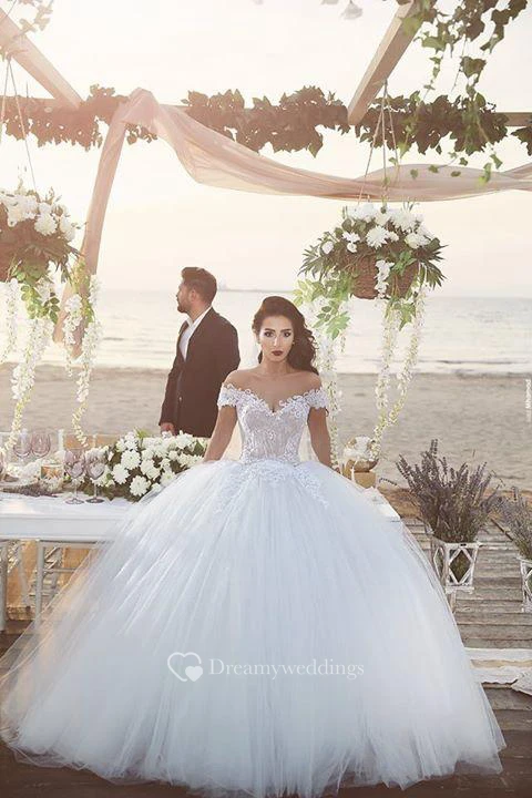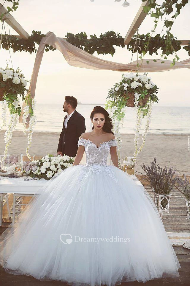Delicate Tulle Lace Appliques Wedding Dress Off-the-shoulder Ball Gown