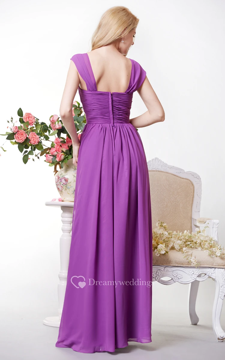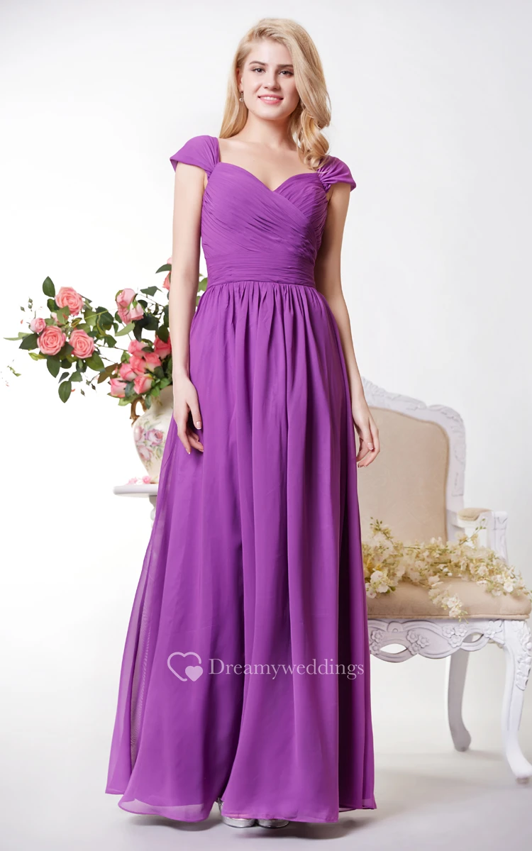 Demure Cap-sleeved A-line Chiffon Long Dress