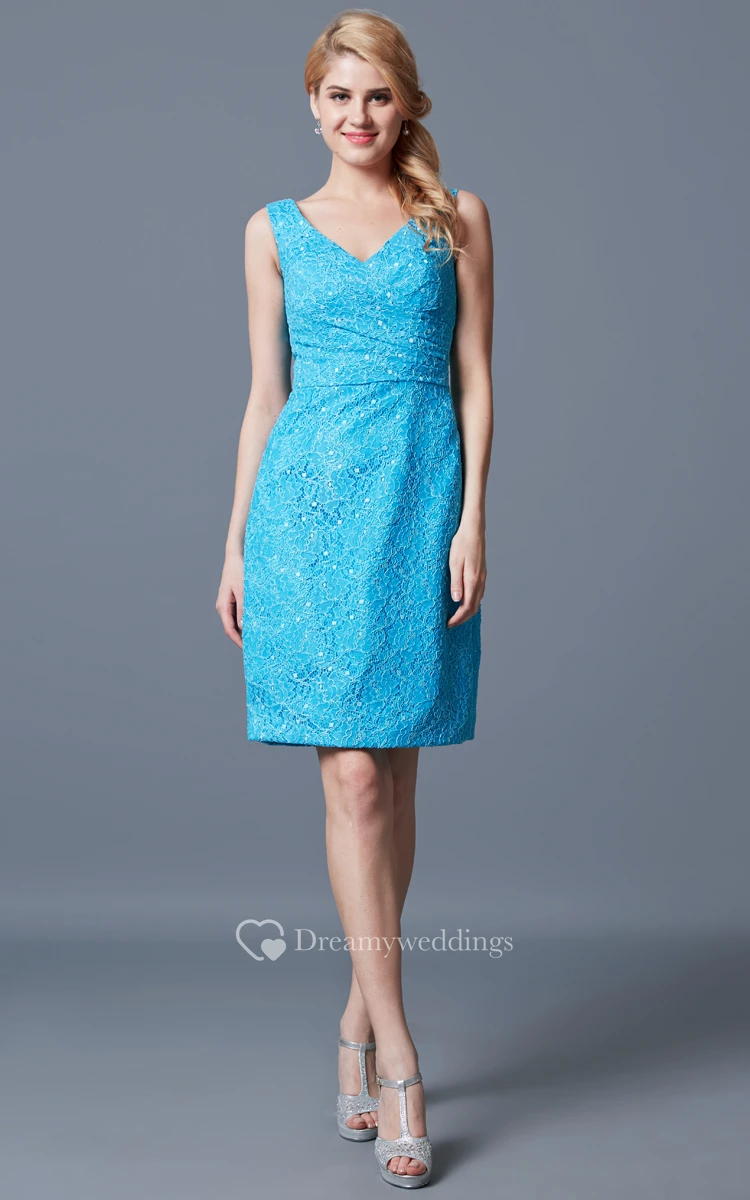 Demure Sleeveless V-neck Sheath Short Lace Dress