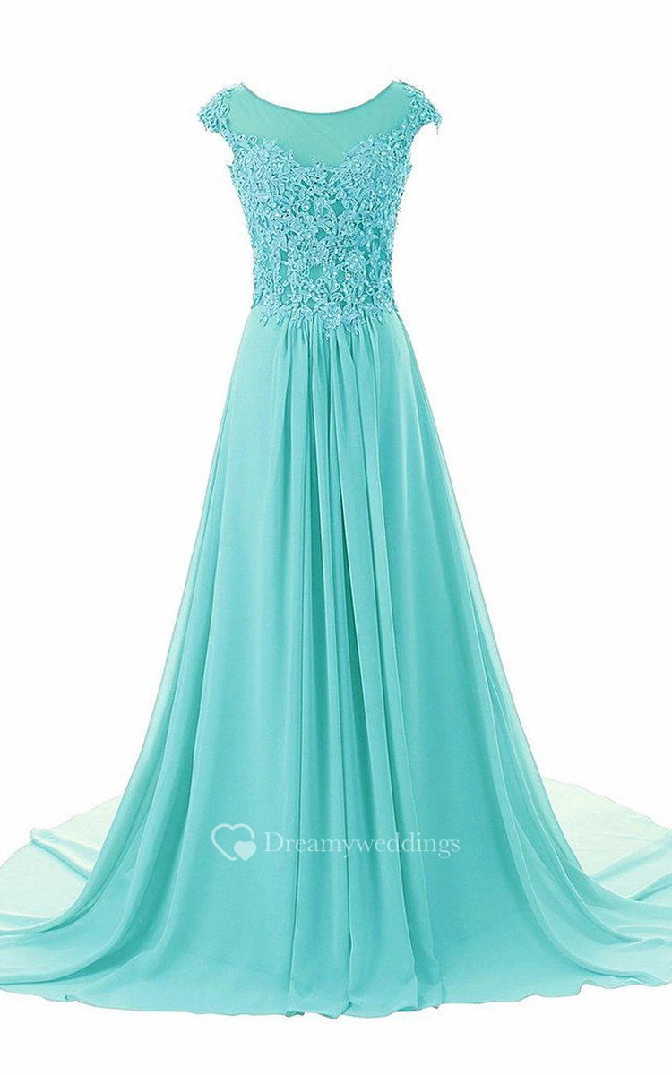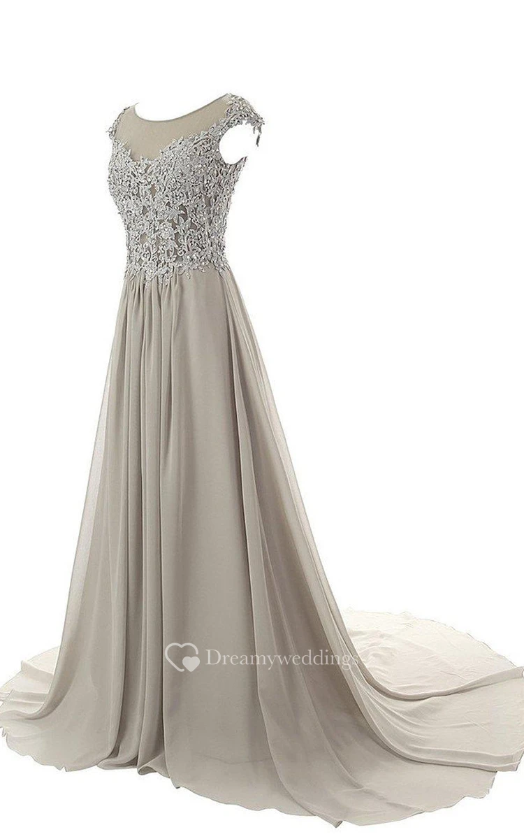 Dramatic Floor Length Chiffon Dress With Beaded Lace Appliques