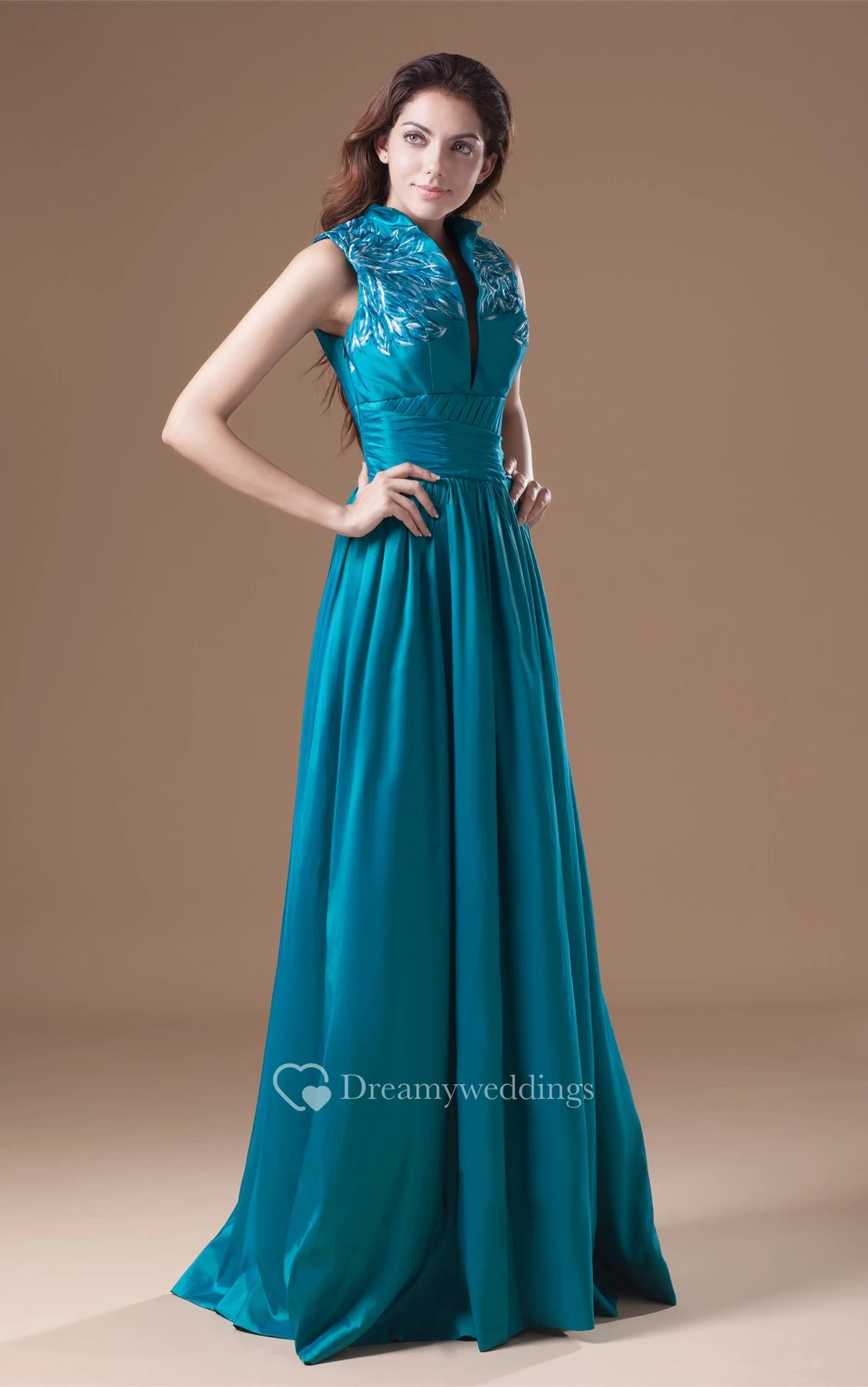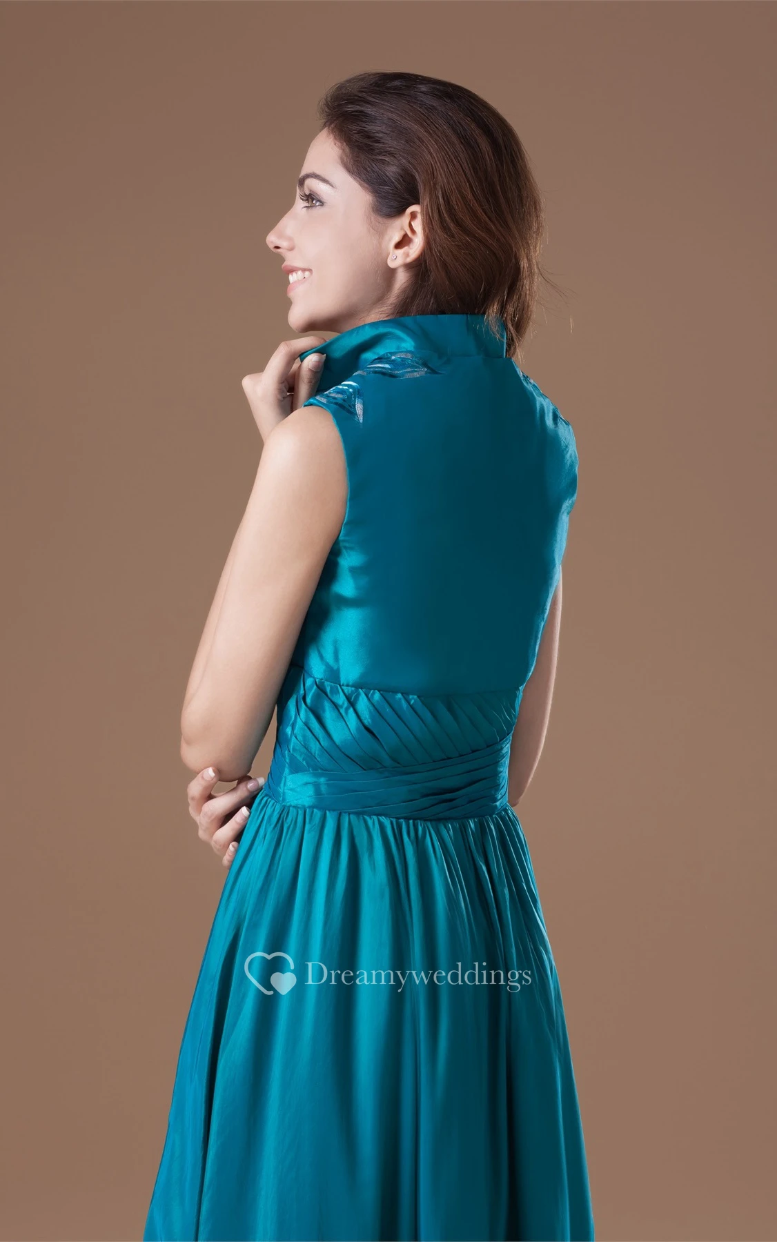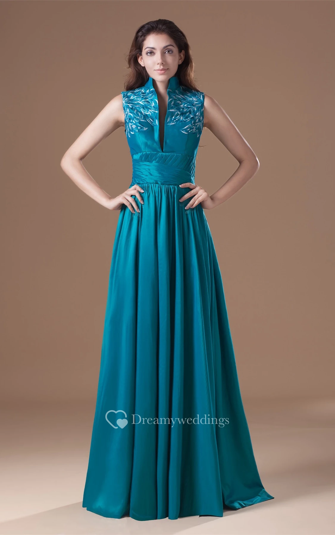 Dramatic Pleated Maxi Taffeta Sleeveless High Neck Special Occasion Dresses