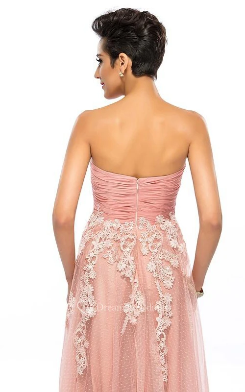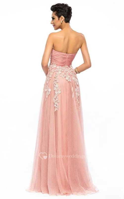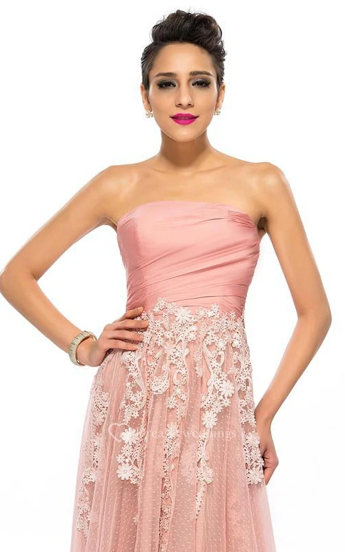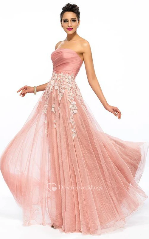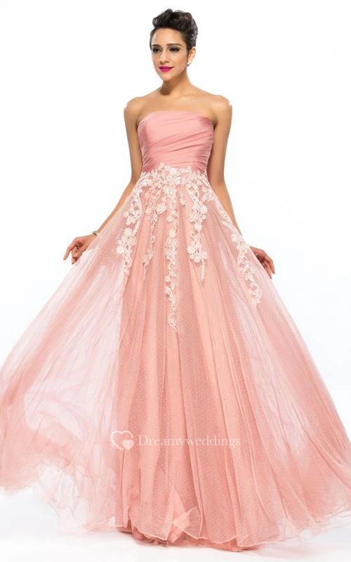 Dramatic Strapless Appliques A-Line Zipper-up Long Prom Dress