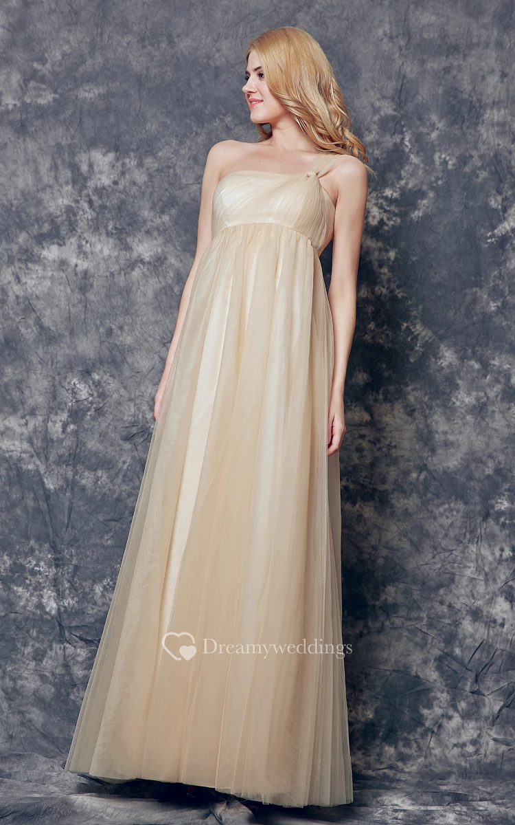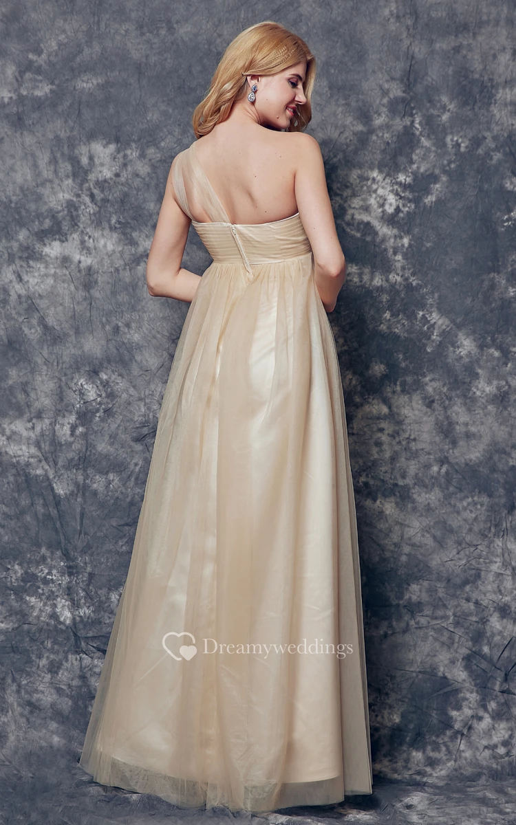 Dreaming One Shoulder Ruched and Pleated Long Tulle Dress