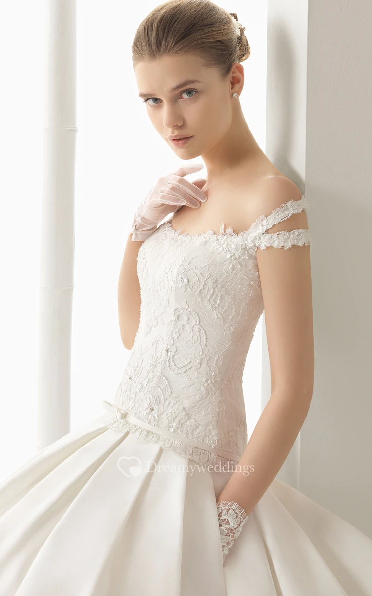 Dropped-Wasitline Double Off Strapped Gown With Lacy Bodice