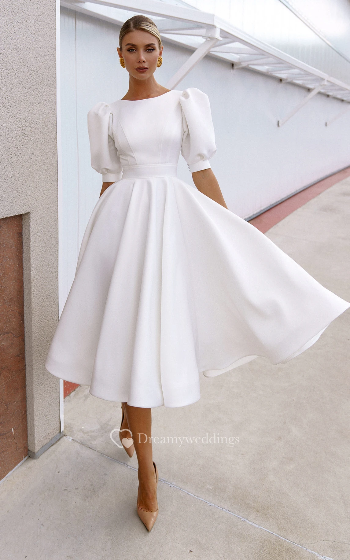 Elegant A Line Bateau Satin Knee-length Wedding Dress