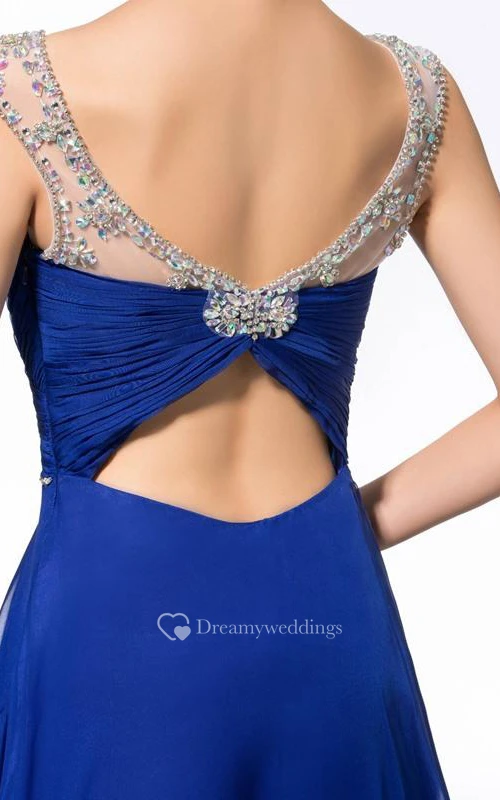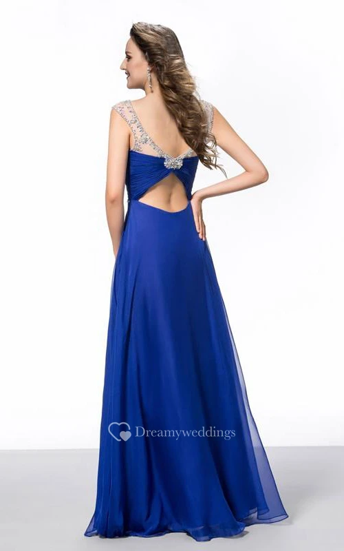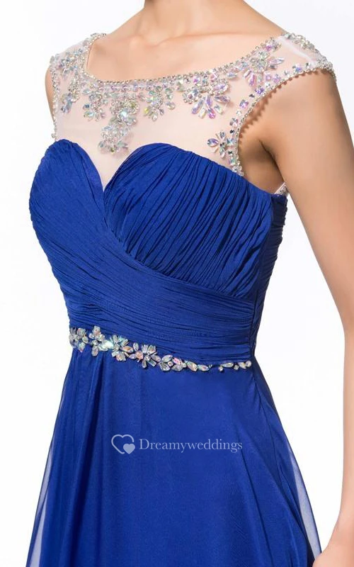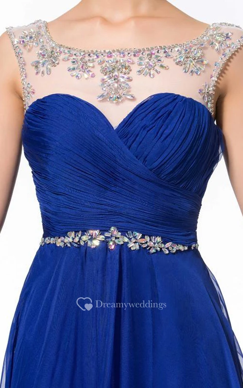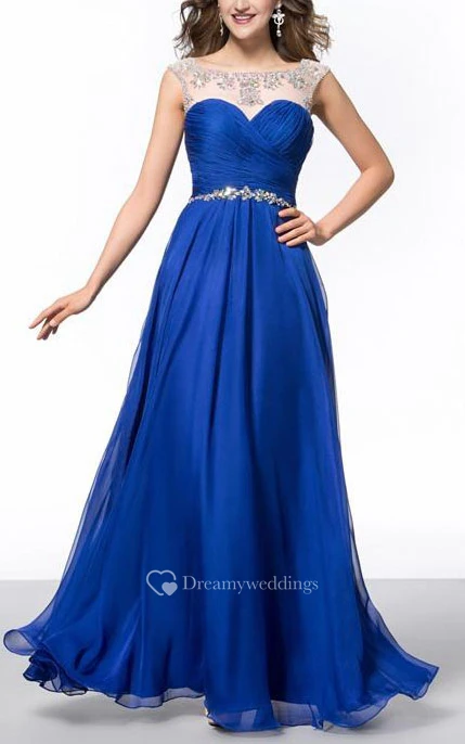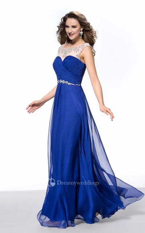 Elegant A-Line Floor-Length Sheer Neck Prom Dress