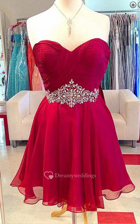 Elegant A-line Sweetheart Chiffon Short Dress With Beading