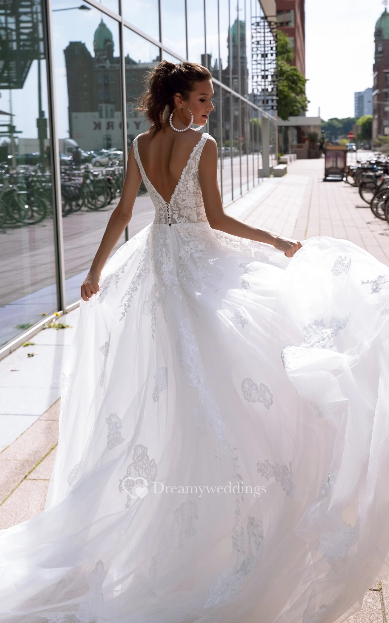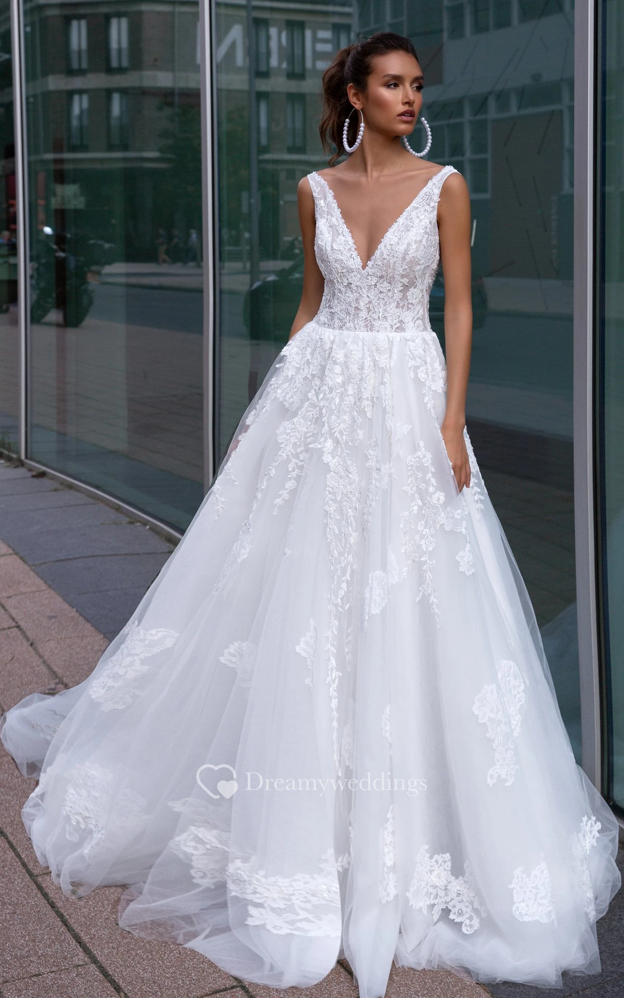 Elegant Ball Gown V-neck Wedding Gown with Train