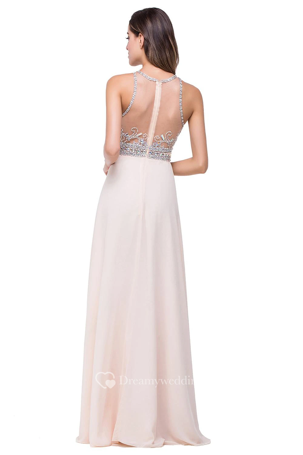 Elegant Beadings Chiffon A-line Prom Dress Zipper Illusion
