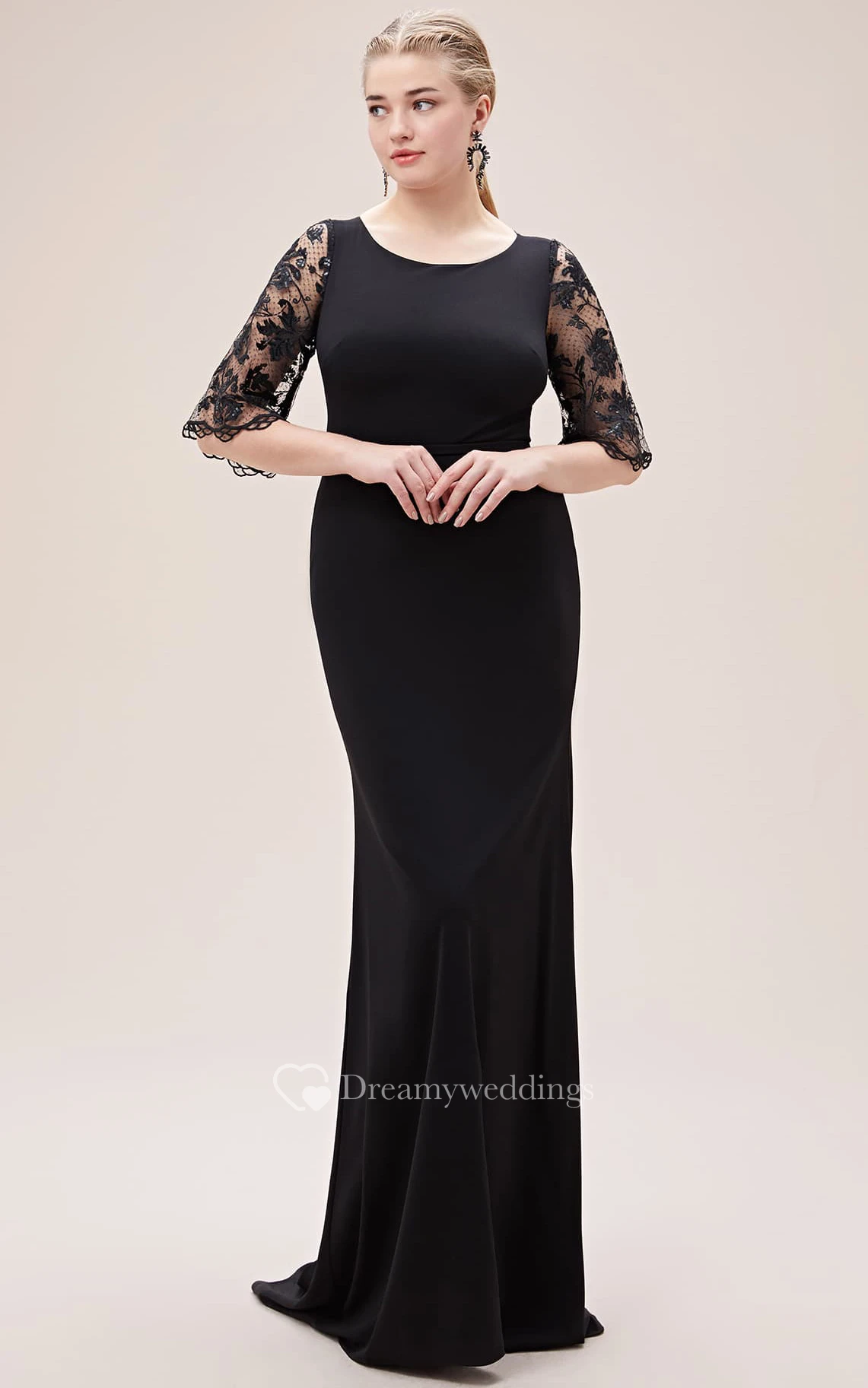 Elegant Brush Train Half Sleeve Jersey Sheath Zipper Prom Dress with Lace