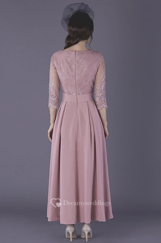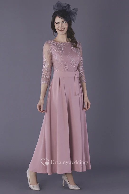 Elegant Chiffon 3/4 Illusion Sleeve Ankle Length Mother Of The Bride Dress