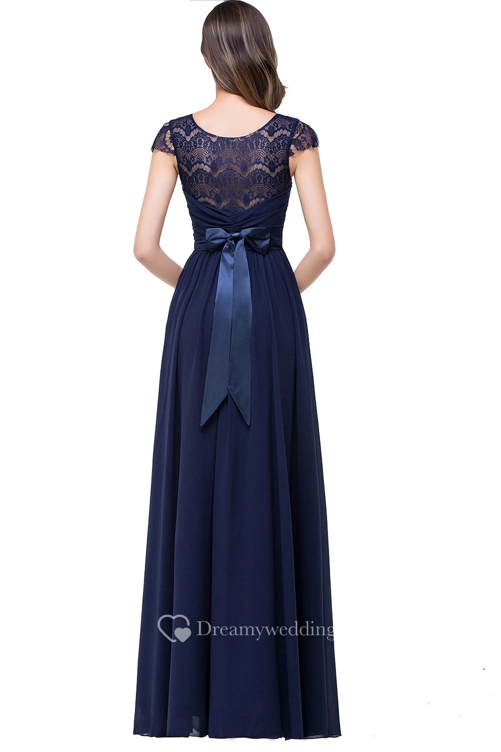 Elegant Chiffon Lace A-line Prom Dress Bowknot Cap Sleeve