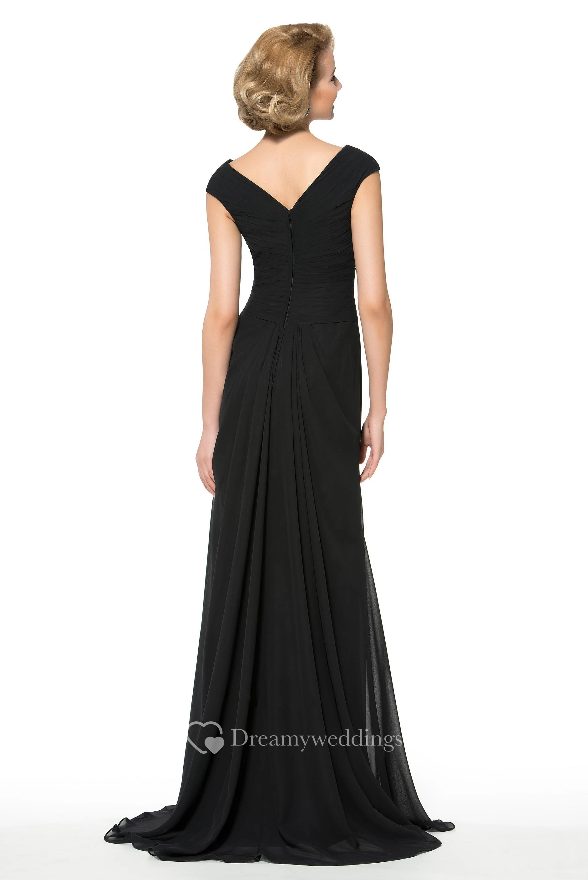 Elegant Chiffon V-Neck Cap Sleeve Long Dress with Beading