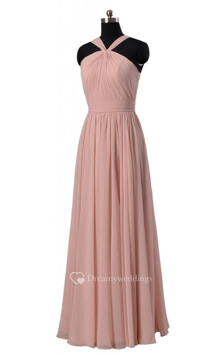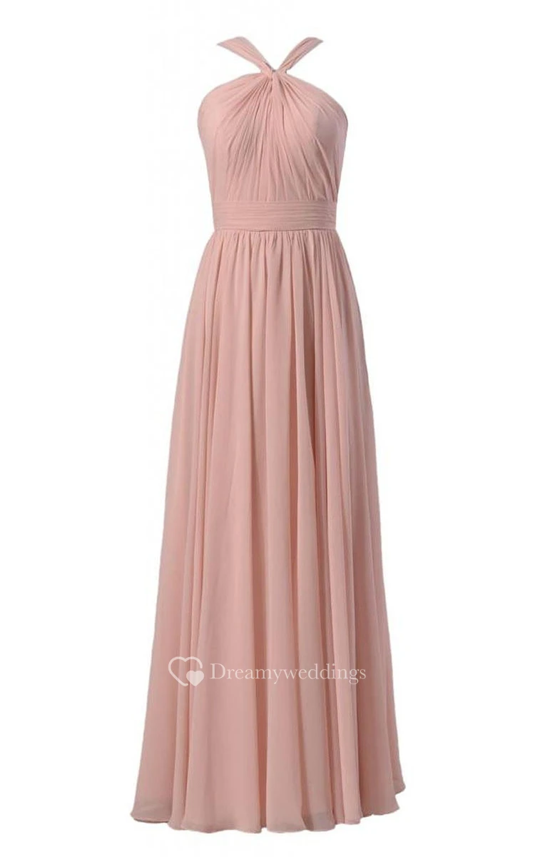 Elegant Halter Pleated A-line Gown With Ruched Band