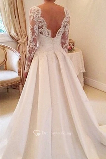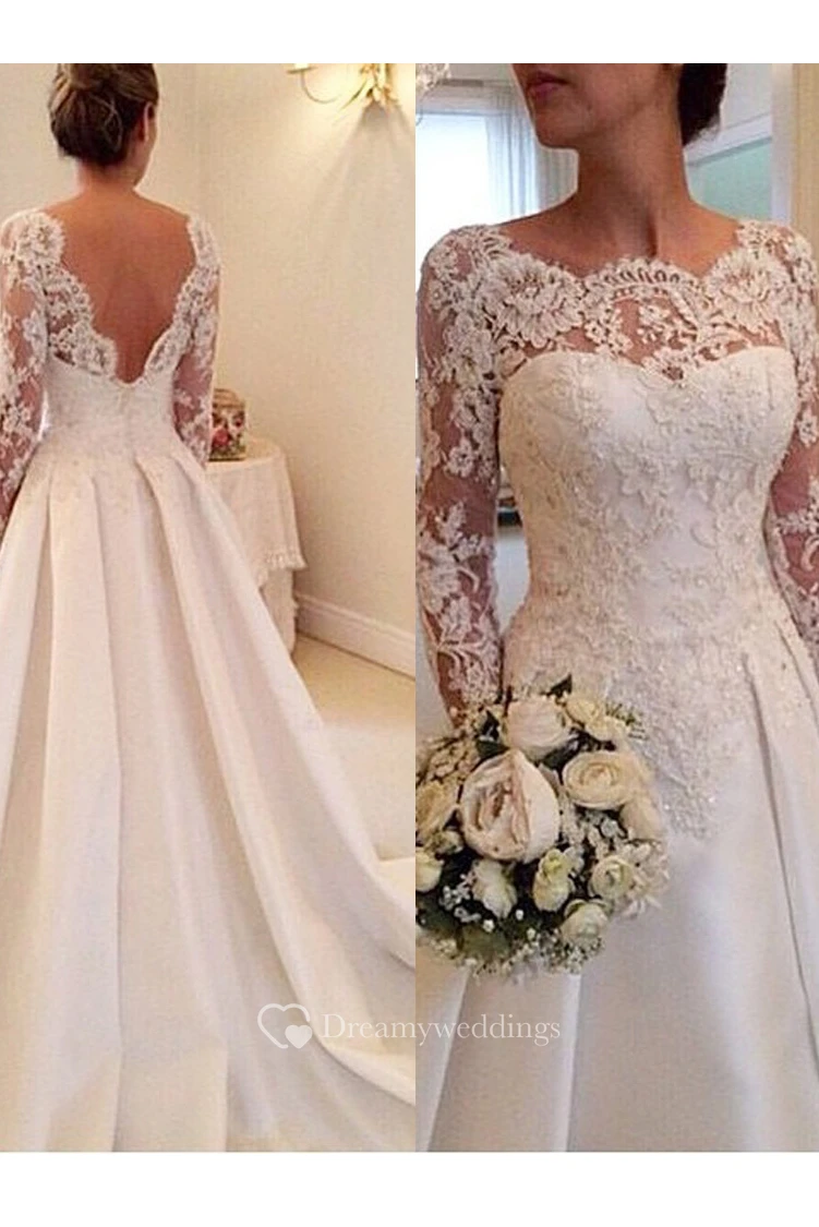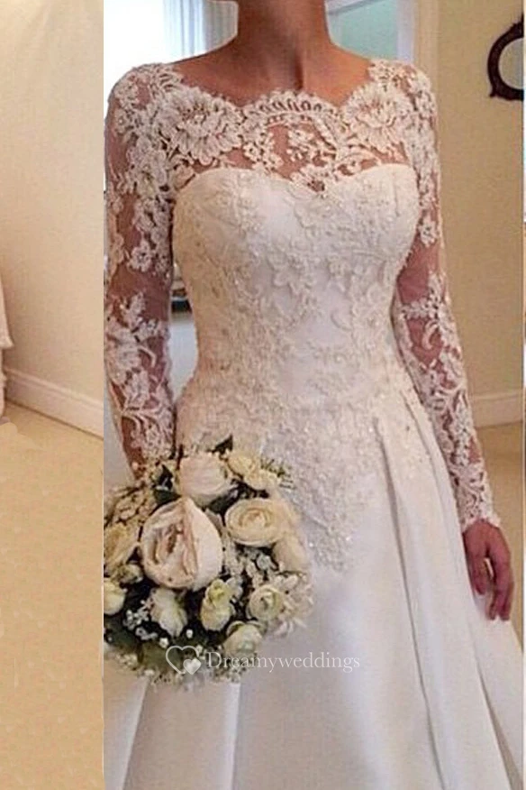 Elegant Illusion Long Sleeve Wedding Dress With Lace Appliques