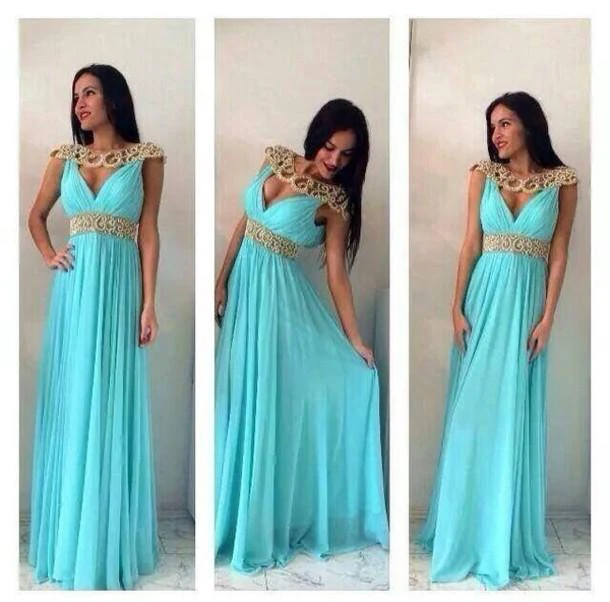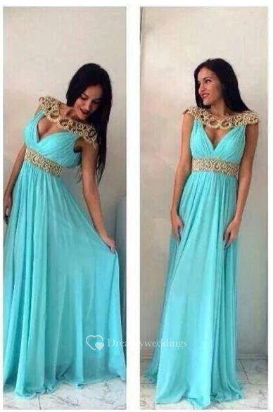 Elegant Jewel Cap Sleeve Chiffon Prom Dress With Beadings