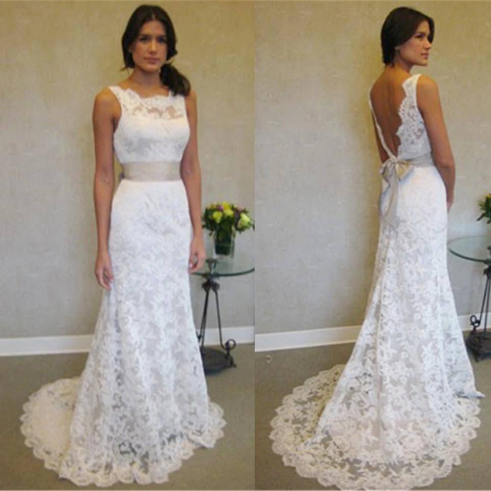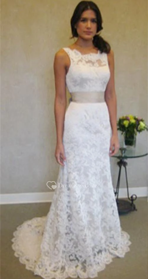 Elegant Lace A-line Sleeveless White Wedding Dress Sweep Train