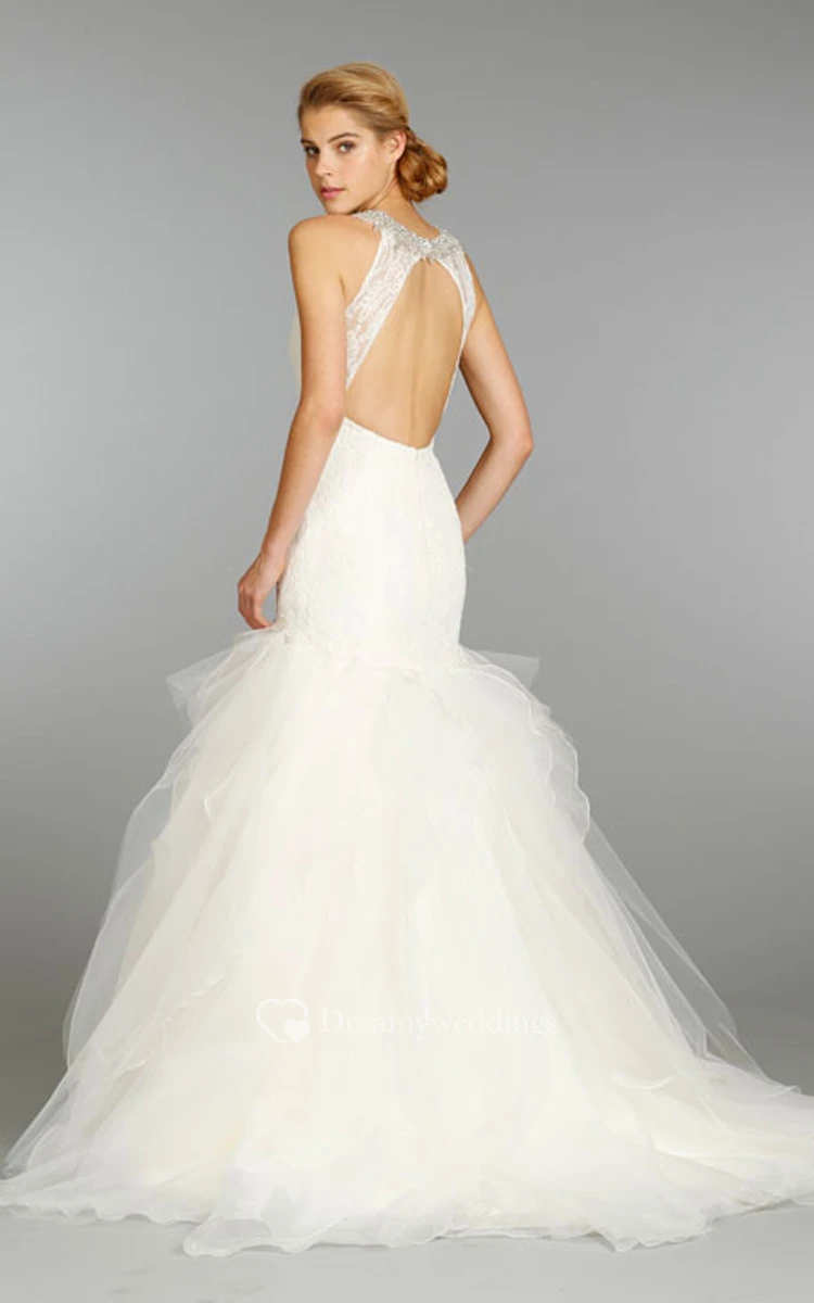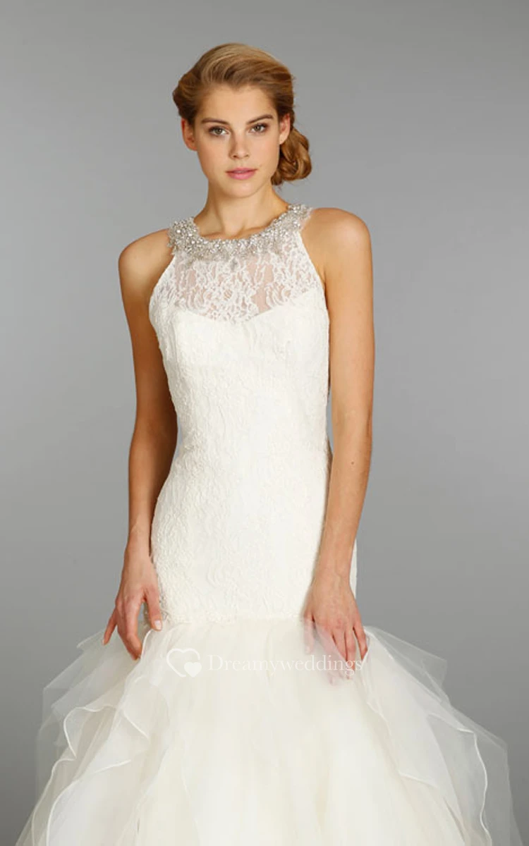 Elegant Lace Bodice Organza Tulle Dress With Crystal Embellished Neckline