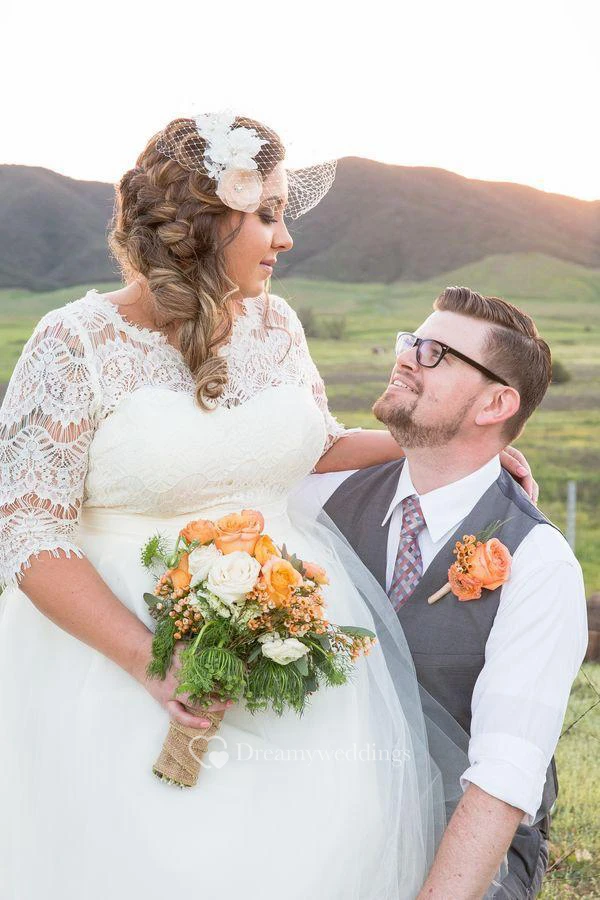 Elegant Lace Illusion Half Sleeve Wedding Dress Plus Size A-line