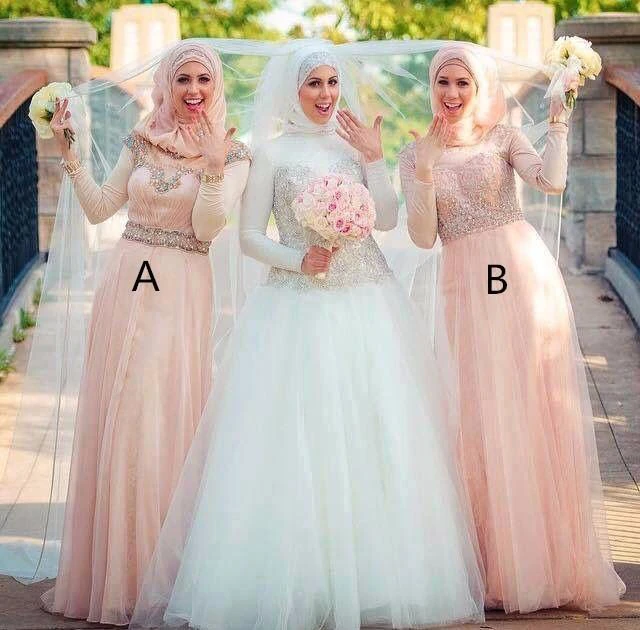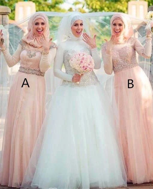 Elegant Long Sleeve Tulle Bridesmaid Dress High Neck Beadings