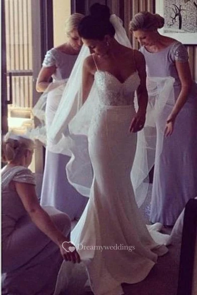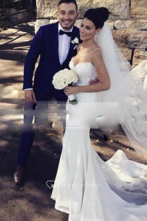 Elegant Mermaid Sheer Lace Sexy Beaded Country Bridal Gowns