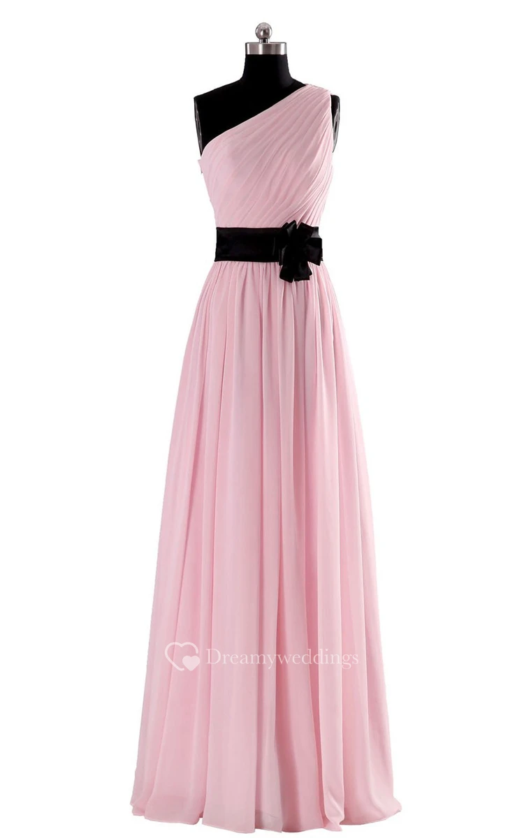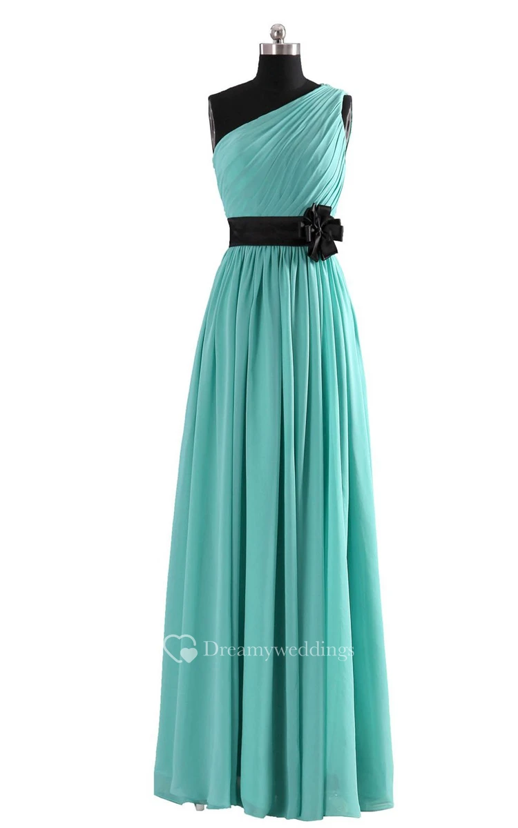Elegant One-shoulder Chiffon A-line Dress With Floral Band