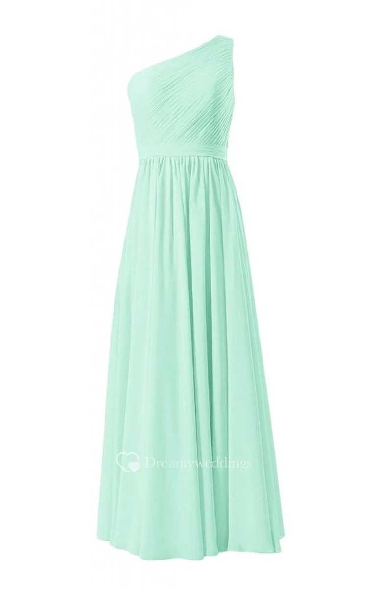 Elegant One-shoulder Pleated Chiffon A-line Gown
