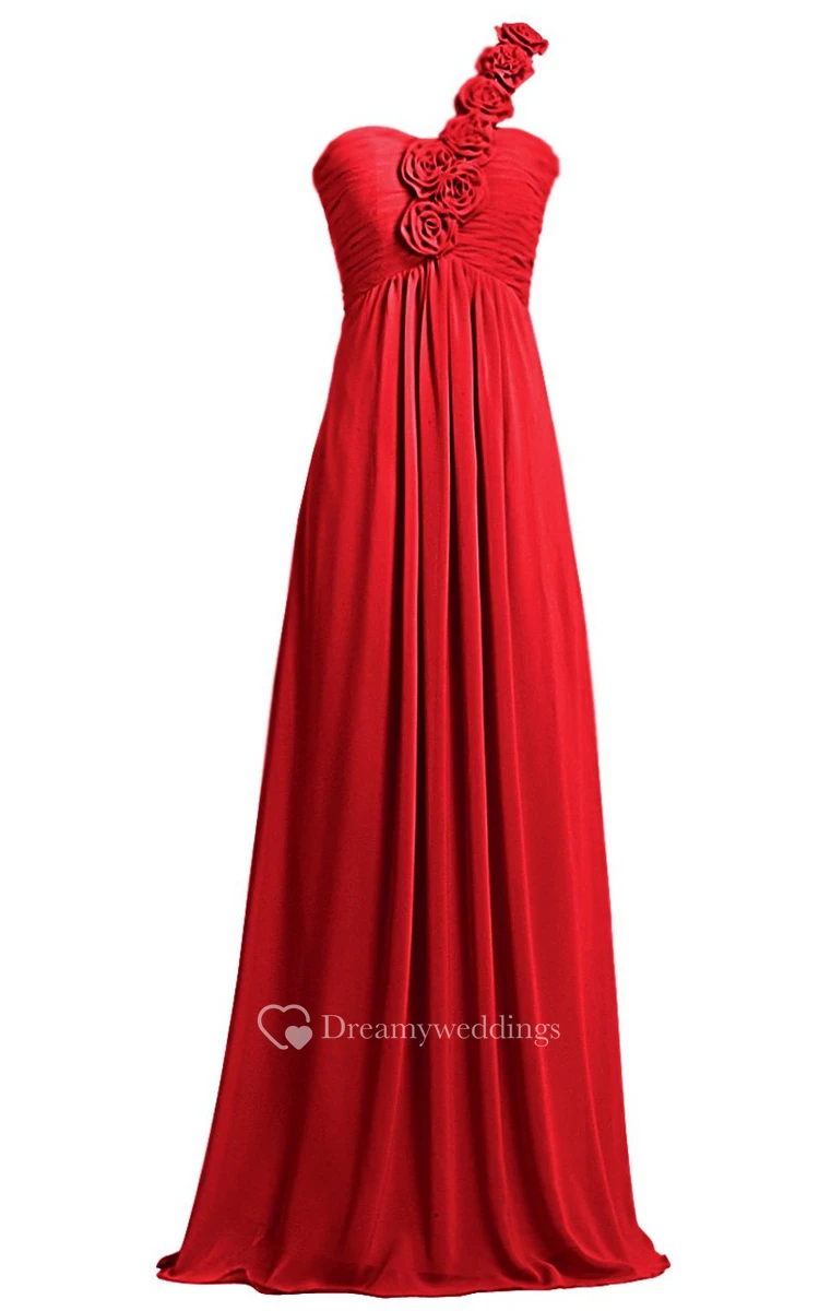 Elegant One-shoulder Ruching Dress With 3D Flowers