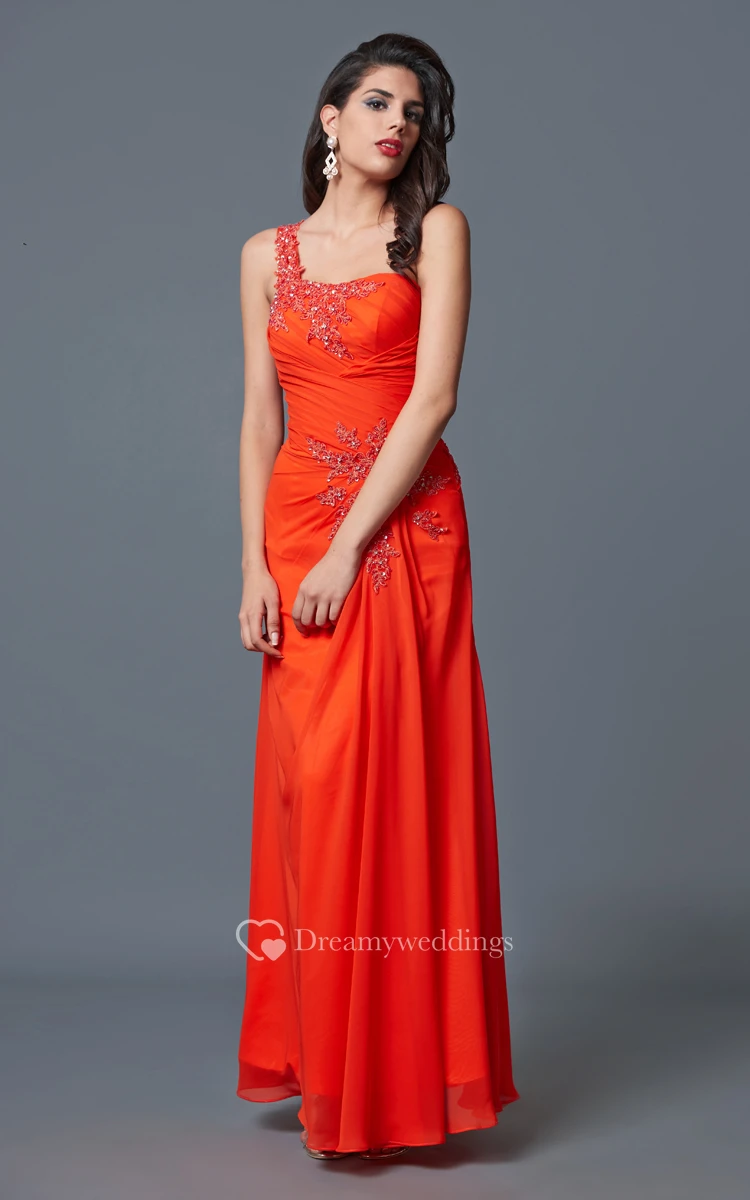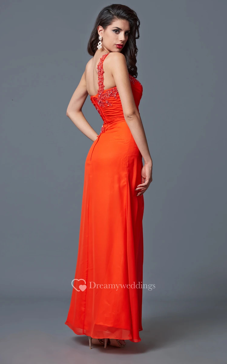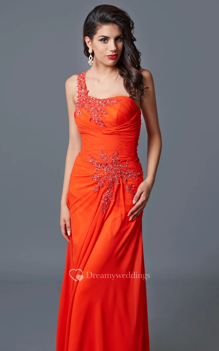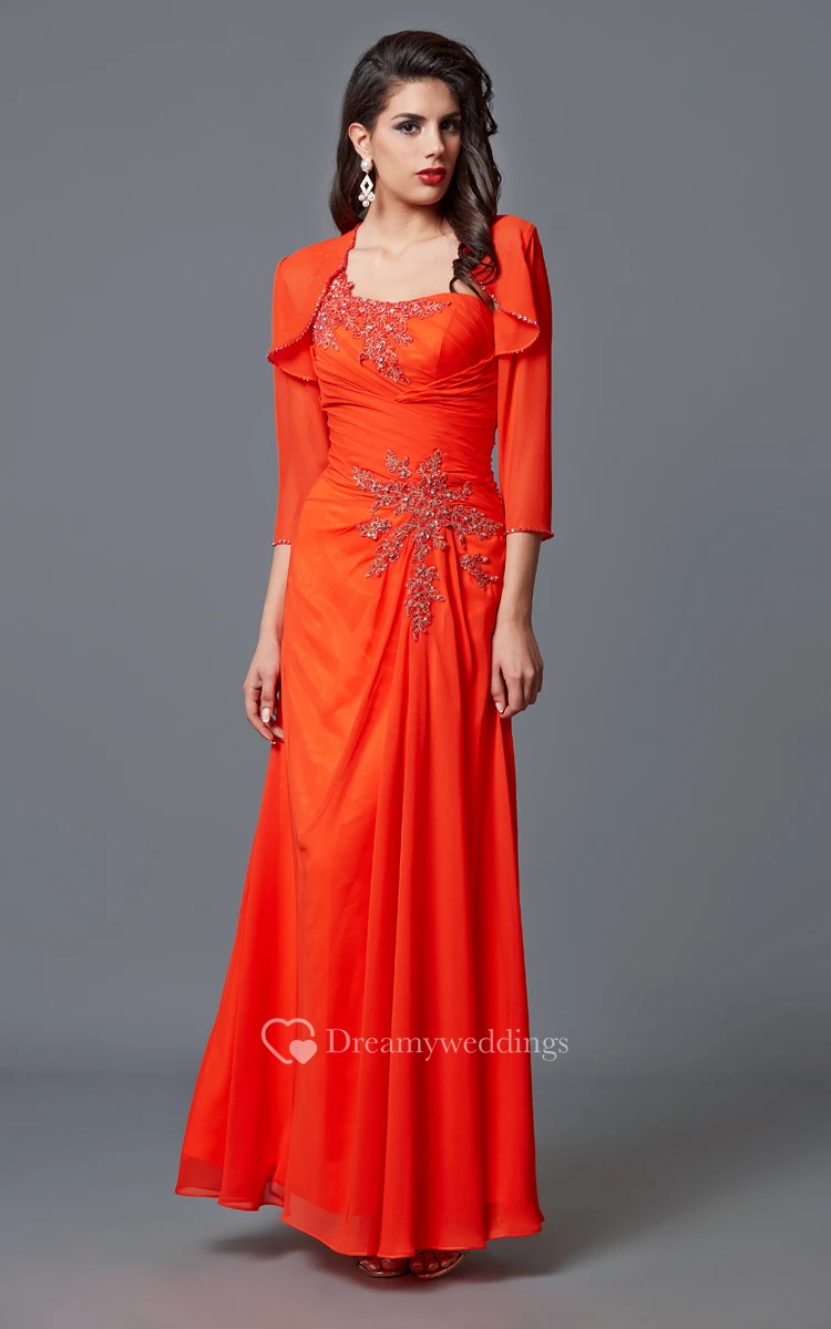 Elegant One-sided Draping Chiffon and Lace Formal Long Dress With Chiffon Jacket