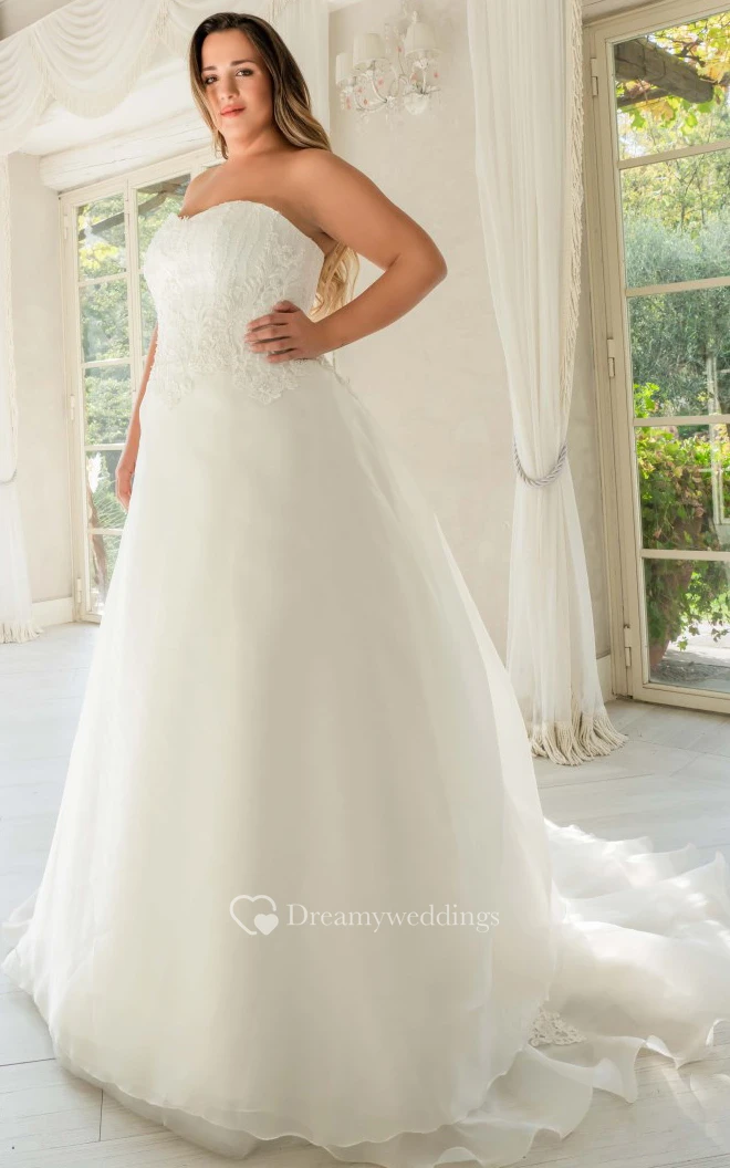 Elegant Organza Sweetheart Sleeveless Appliques Wedding Dress With Open Back