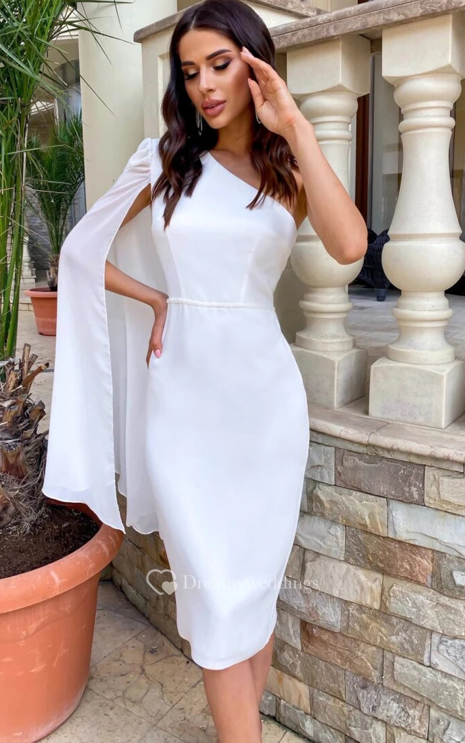 Elegant Pencil Chiffon One-shoulder Sleeveless Wedding Dress with Open back