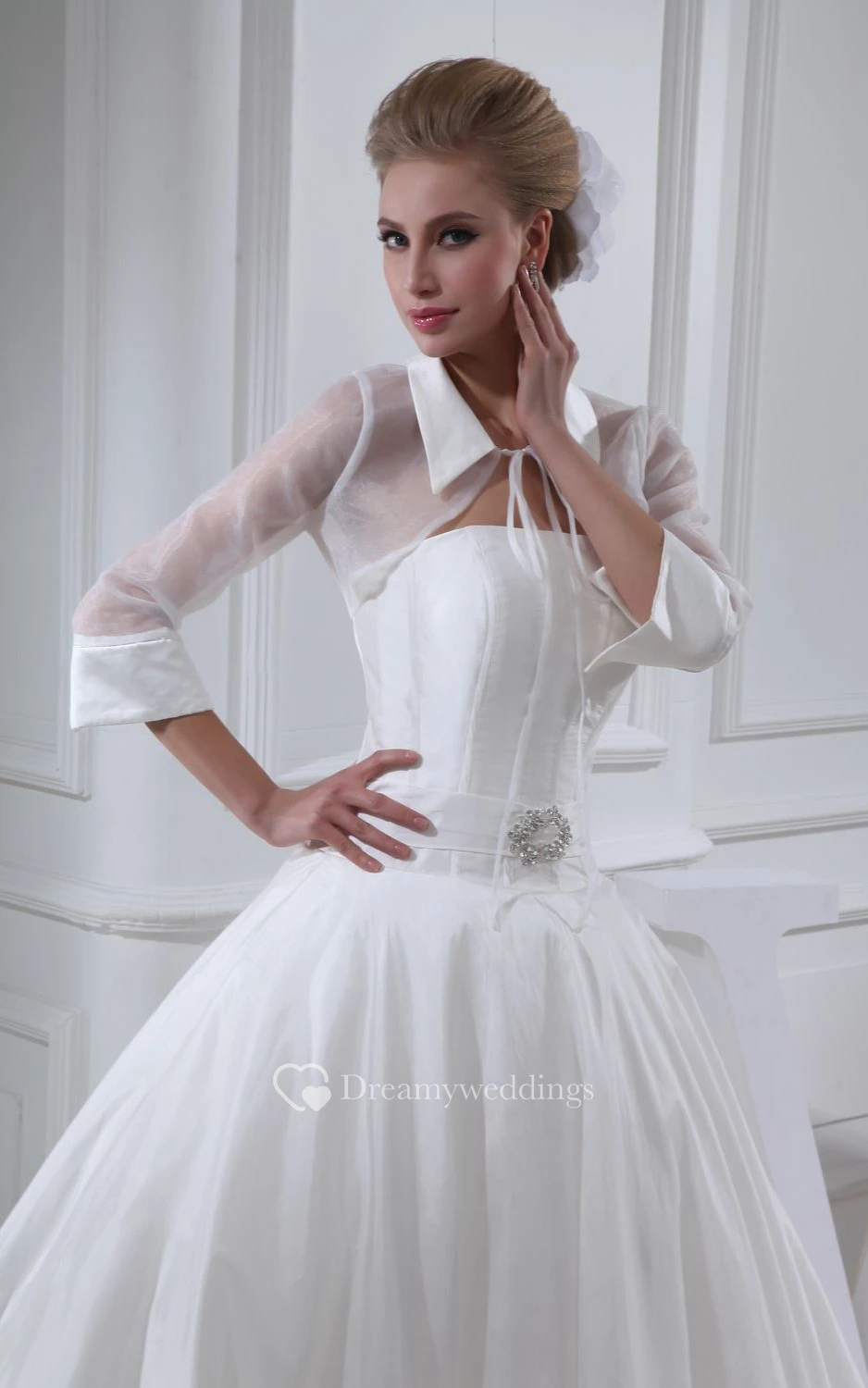 Elegant Pleated 3-4-Sleeve A-Line Dress With Broach and Corset Back