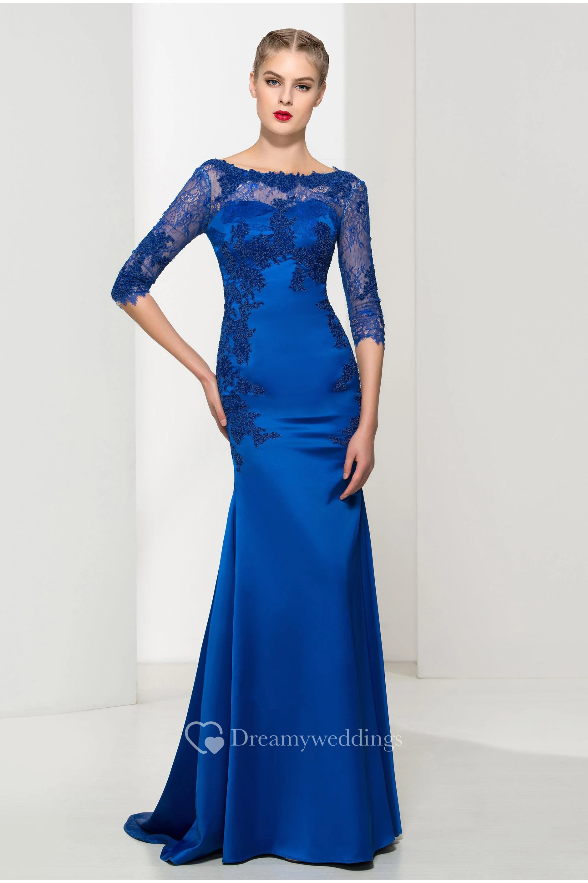 Elegant Satin and Tulle Mermaid Bateau Half-Sleeve Dress with Low-V Back