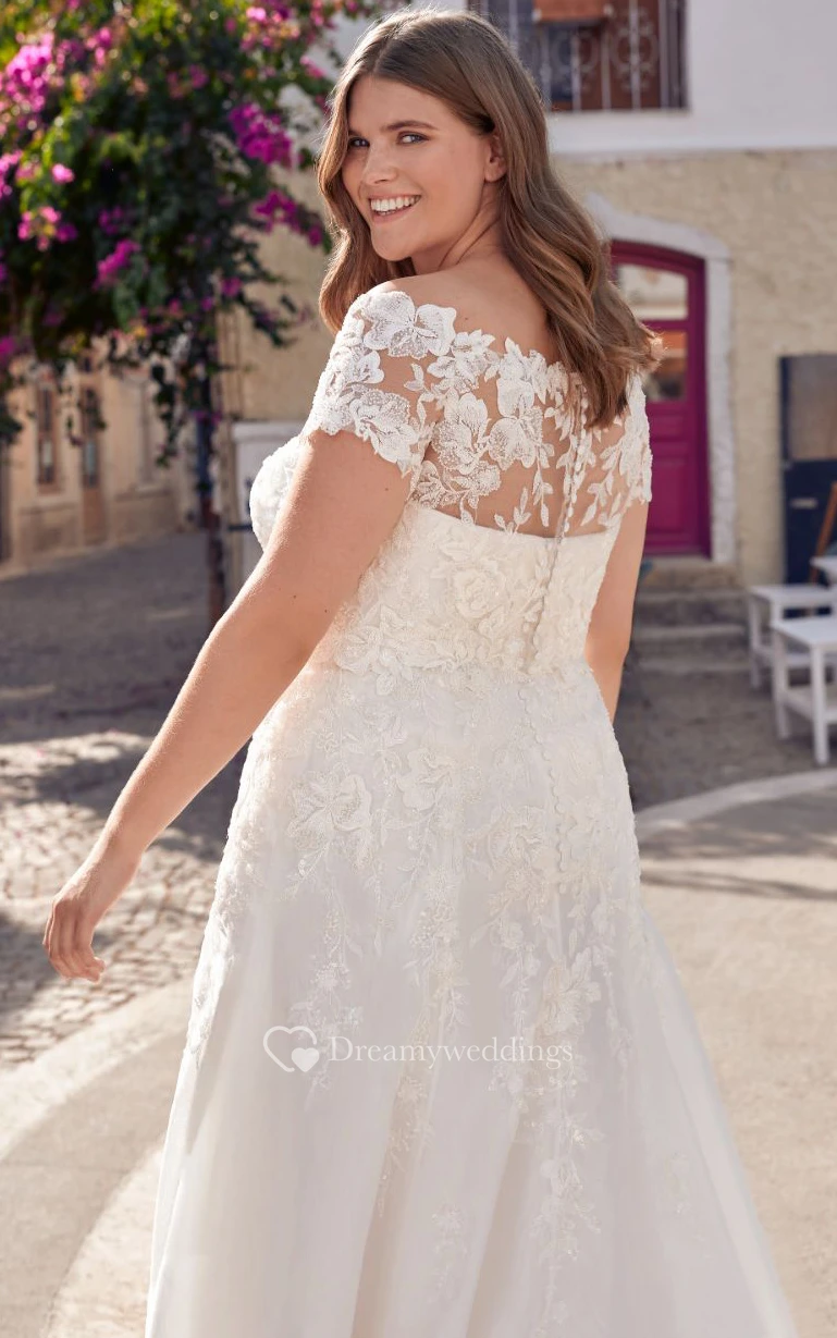 Elegant Satin Floor-length Short Sleeve A Line Open Back Wedding Dress with Appliques