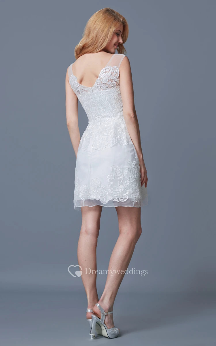 Elegant Sleeveless A-line Short Lace Dress With Pleats