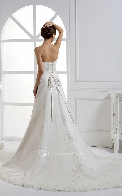 Elegant Strapless Ruched A-Line Dress With Appliques and Court Train