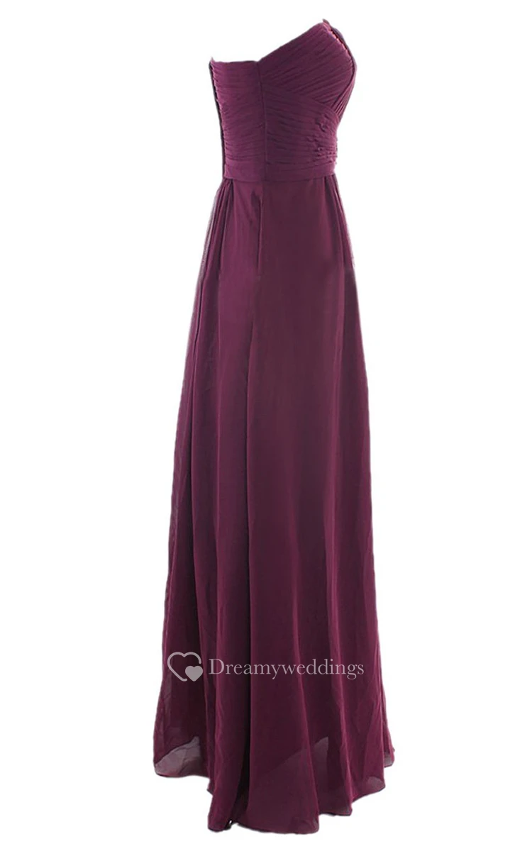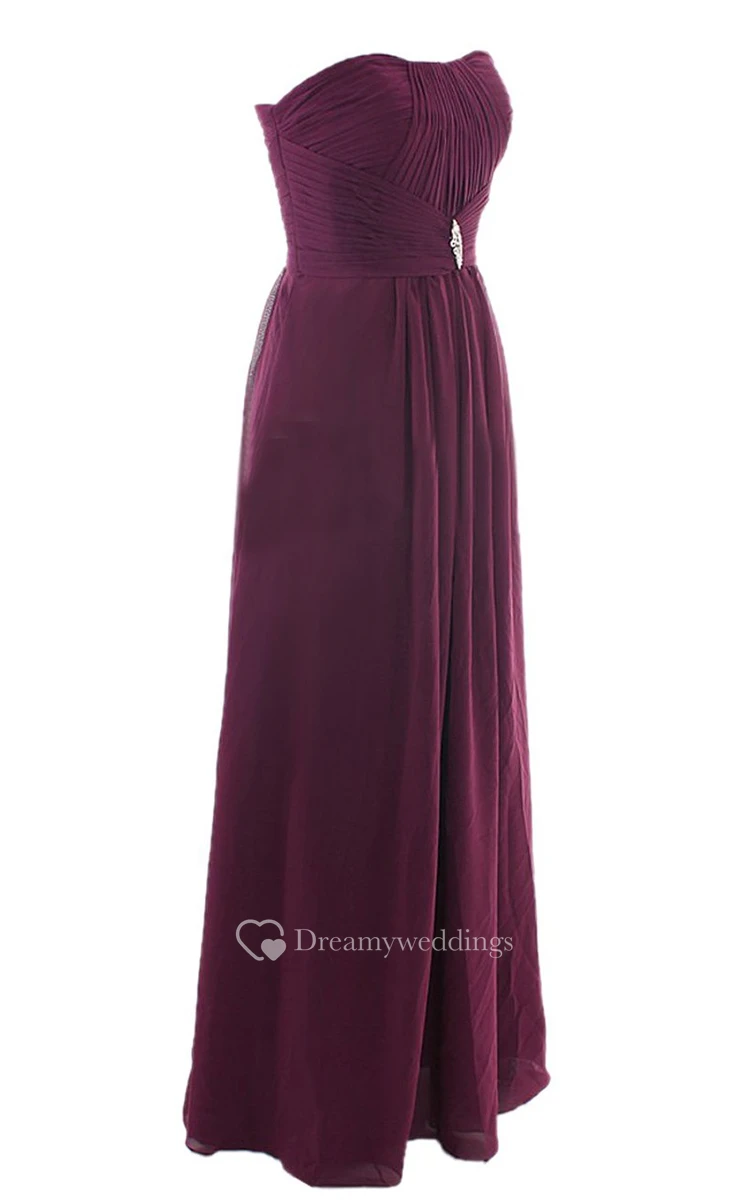 Elegant Strapless Ruched A-line Gown With Crystal Brooch