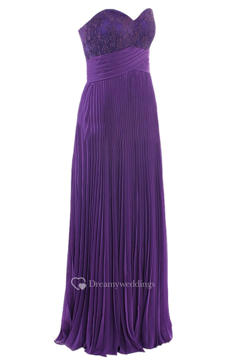Elegant Sweetheart Pleated A-line Dress With Lace Appliques