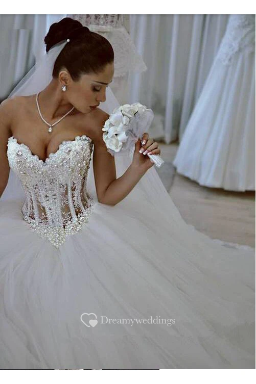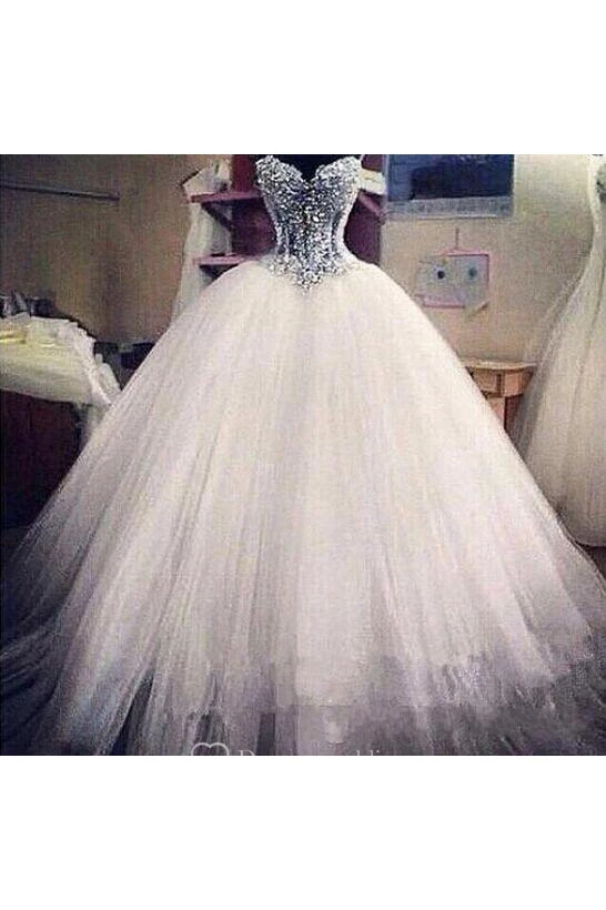 Elegant Sweetheart Sleeveless Tulle Wedding Dress With Appliques Beadings