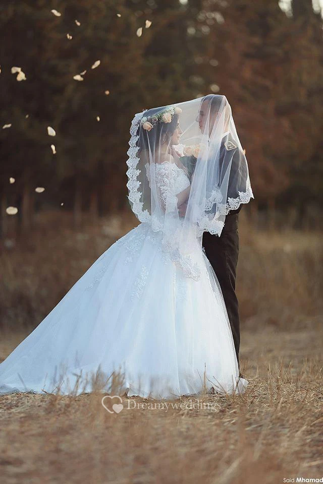 Elegant Tulle Lace Appliques Ball Gown Wedding Dress Half Sleeve