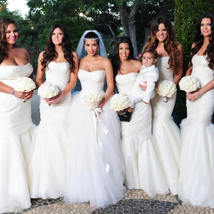 Elegant Tulle Mermaid White Bridesmaid Dress Sweetheart Sleeveless