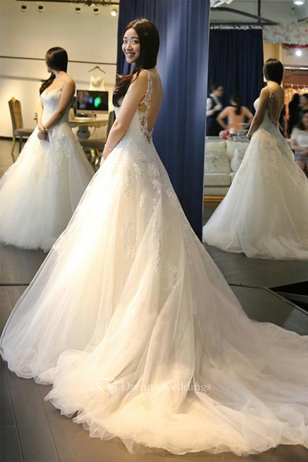 Elegant V Neck Backless Wedding Dresses With Appliques