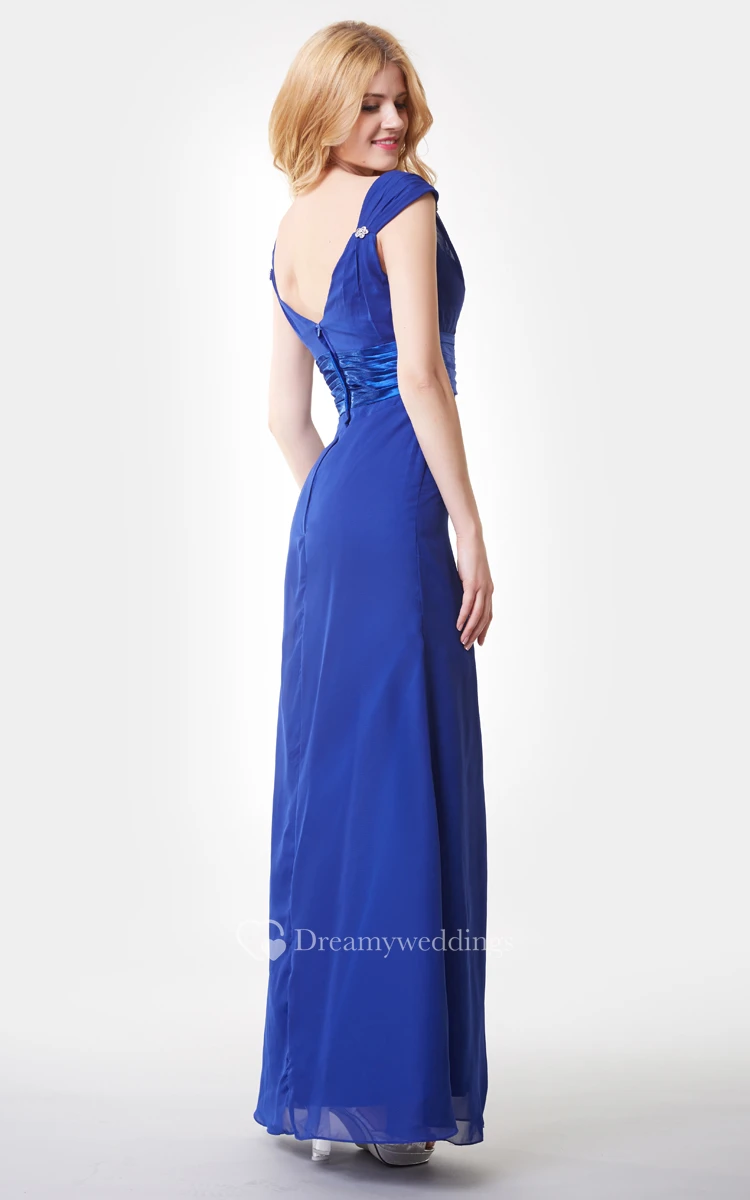 Elegant V-neck Ruched Waist A-line Long Chiffon Dress