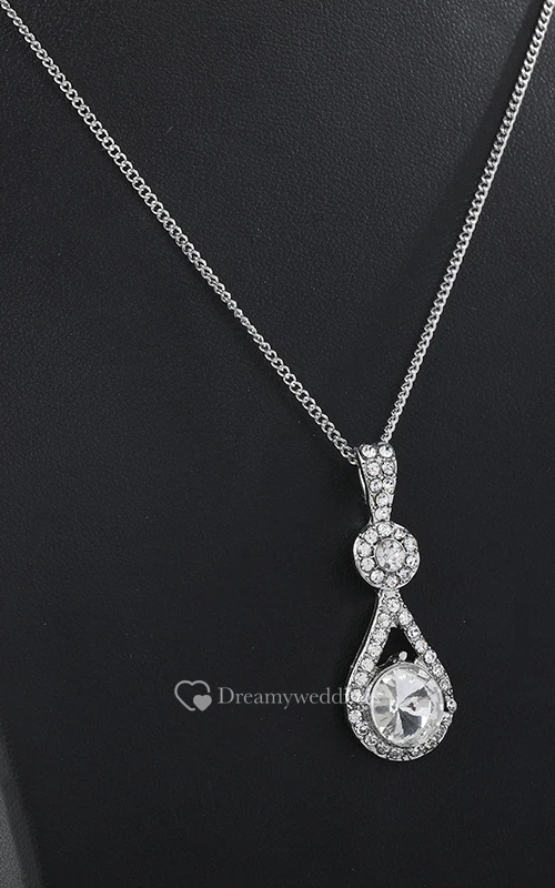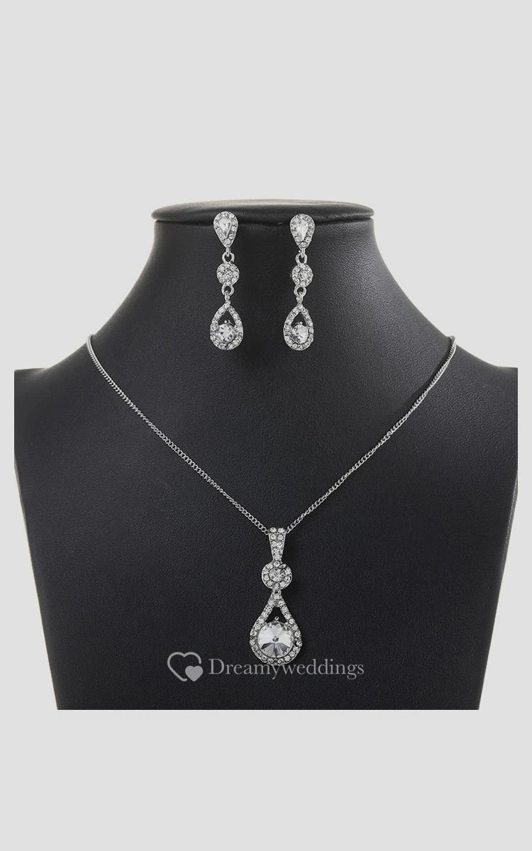 Elegant Water Drop Design Rhinestone Necklace and Earrings Jewelry Set