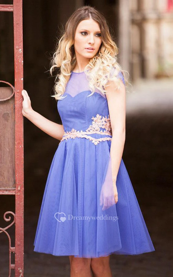 Embroidered Illusion Boat Neck Short Tulle Dress
