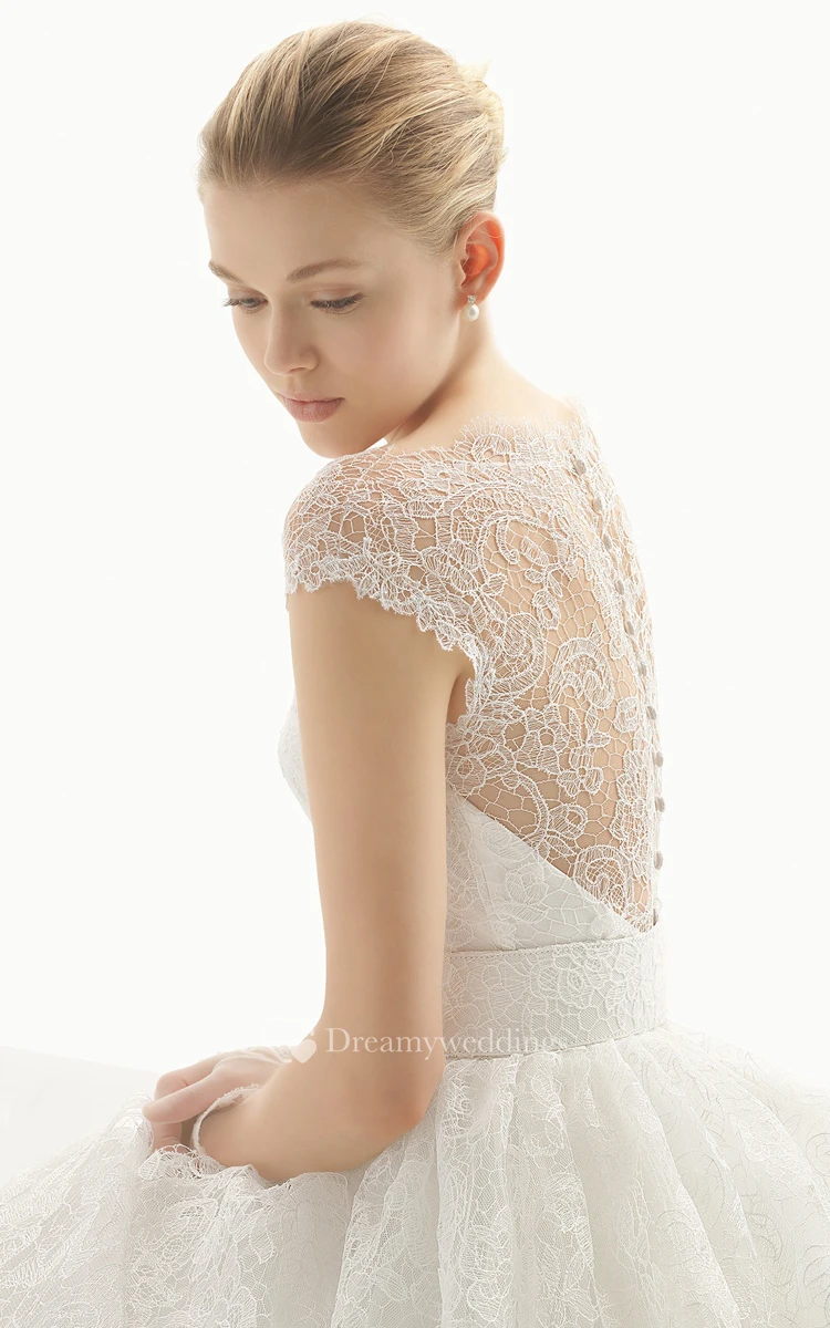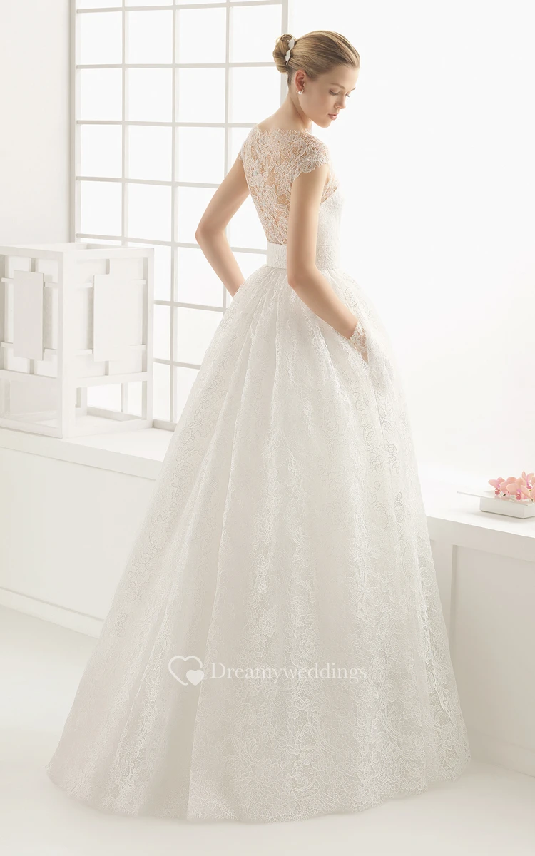 Embroidery Cap-Neck Back Elegant Gown With Illusion Back