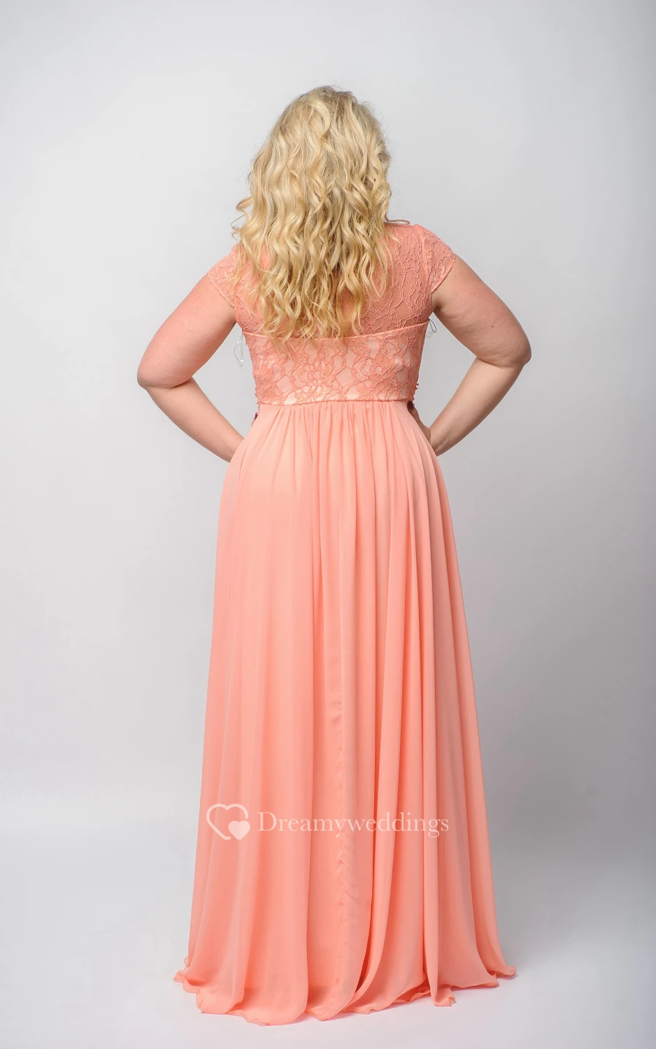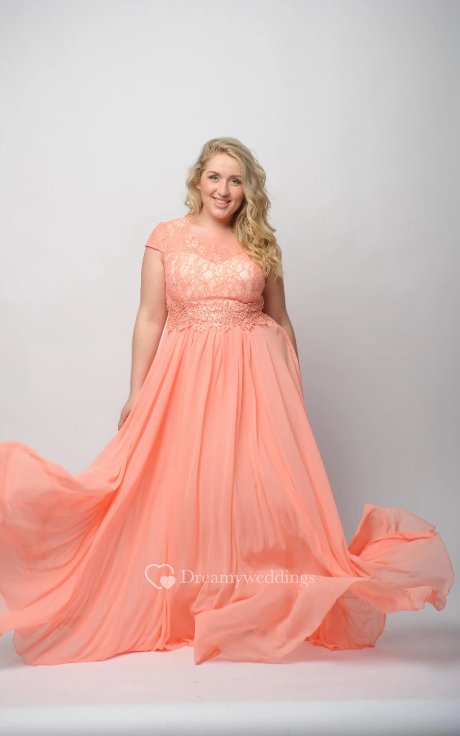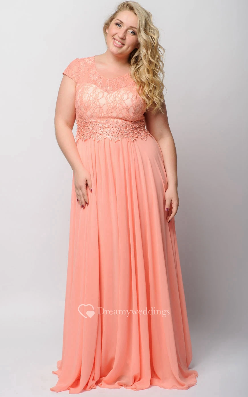 Empire Bateau Short Sleeve Empire Chiffon Appliques Illusion Dress