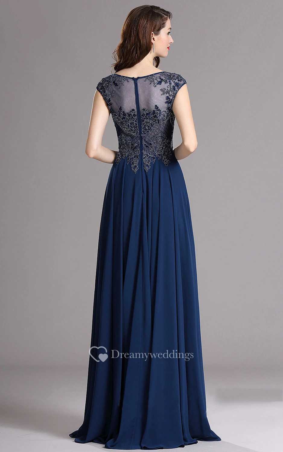 Empire Bateau Short Sleeve Empire Chiffon Appliques Zipper Dress