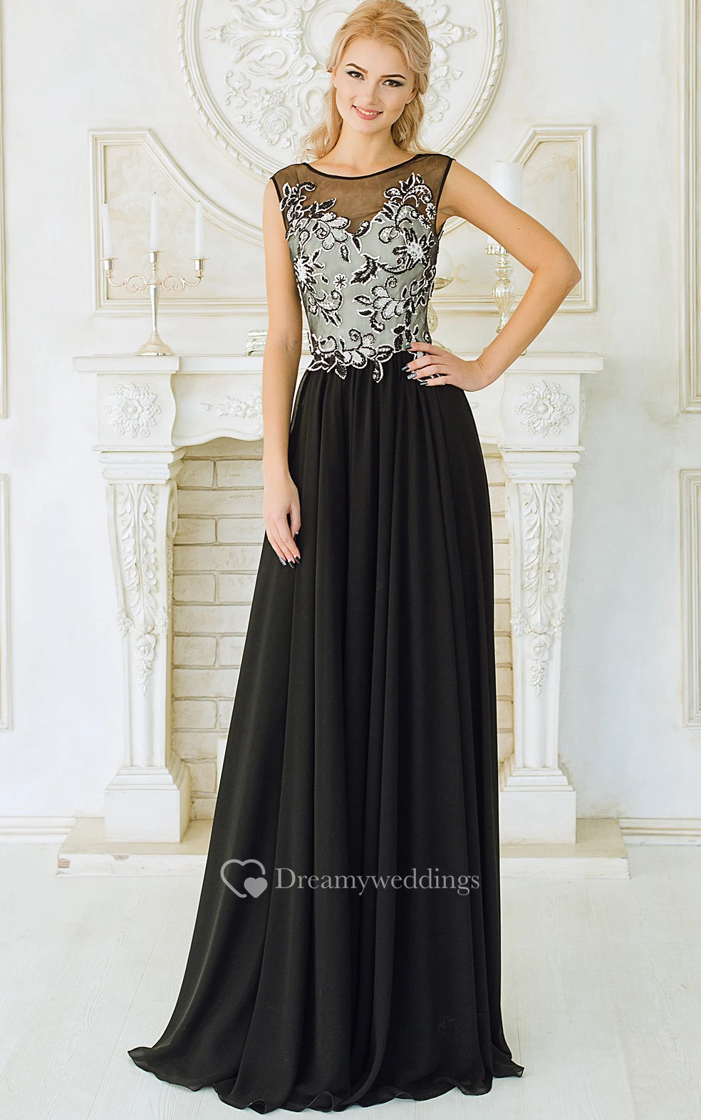 Empire Floor-Length Sweep Bateau Sleeveless Empire Chiffon Appliques Dress